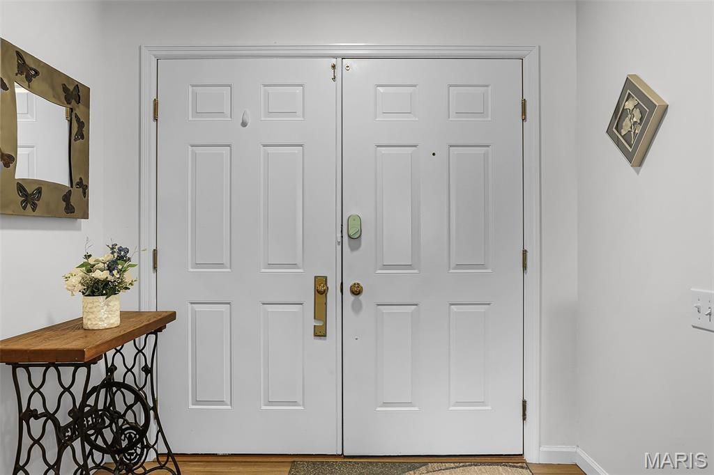 Centrally located in the heart of Creve Coeur, this freshly updated 2BD/2BA condo offers an expansive 1,849 sq ft of comfortable, move-in ready living. Set in a private 15-unit building, the unit features an open floor plan with a bright living and dining area highlighted by a wall of bay windows overlooking a private tree-lined backdrop. Updates in 2022 include new flooring, fresh paint throughout, lighting fixtures, ceiling fans, stainless steel appliances, faucets, toilets, and hardware. The spacious primary suite offers a large walk-in closet and a luxury bath with separate soaking tub and shower. Additional highlights include a generous second bedroom, abundant storage throughout, in-unit laundry (washer and dryer to stay), and a secure building with elevator access. Enjoy two assigned garage parking spaces, EV charger capability, and a private storage unit. The building has been recently improved with a new roof (2024), fresh exterior paint (2024), and a new garage door (2025). Convenient to shopping, dining, and easy highway access.