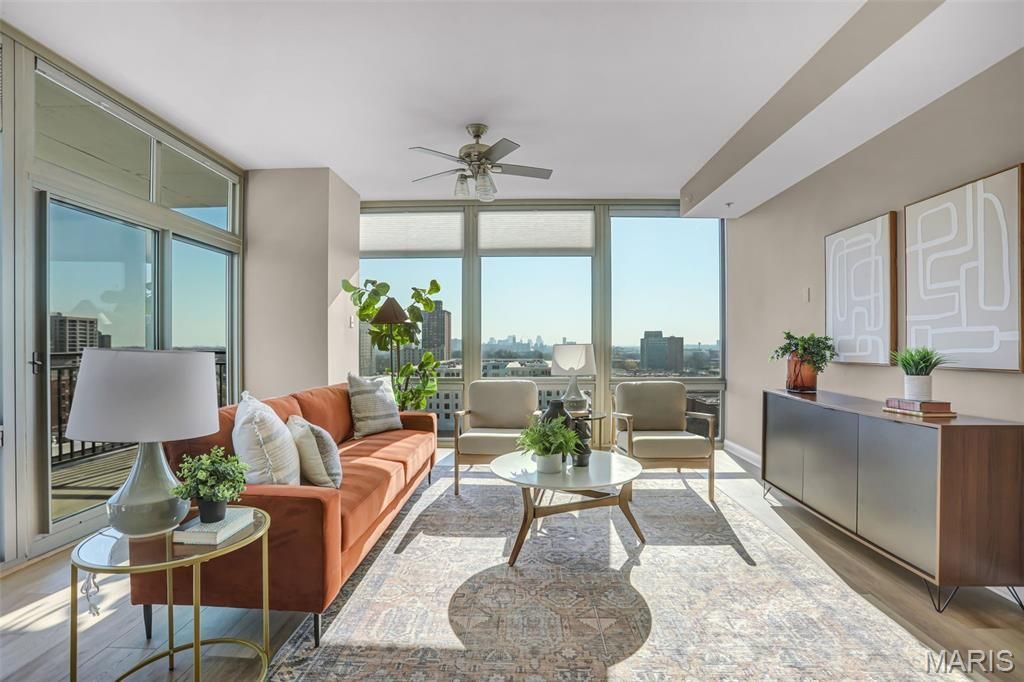 TURNKEY LUXURY WITH ICONIC ARCH VIEWS. Welcome to Unit 1104 at the prestigious Park East Tower. Located in the highly coveted 04 stack, this 11th-floor condominium delivers breathtaking, unobstructed views of the St. Louis skyline and the Gateway Arch. Step out onto your private north-facing balcony to take in the spectacular eastern Arch views-the perfect extension of your living space for morning coffee or evening cocktails.Perfect for busy professionals seeking a true drop your bags and live experience, this unit has just undergone a stunning modernization. Discover brand-new Casa Bella laminate flooring flowing through the open-concept living and dining areas, paired with plush new carpeting in both spacious bedrooms. The showstopping kitchen features freshly installed white solid-surface countertops with elegant gray marbling, extending seamlessly up the wall as a continuous backsplash. Modernized with sleek matte black hardware and striking new pendant lighting, the space is built for entertaining. The luxurious primary en-suite echoes these updates with matching marbled counters.Living at Park East Tower means enjoying unmatched, resort-style amenities. Your HOA provides a 24/7 doorman, a state-of-the-art exercise room, a gorgeous pool, a private party room for larger gatherings, and the highly coveted reservable Guest Suite for your out-of-town visitors. Located literally steps from the BJC/WashU Medical Campus, Whole Foods, and Forest Park. Skip the renovations and secure the best view and lifestyle in the CWE!